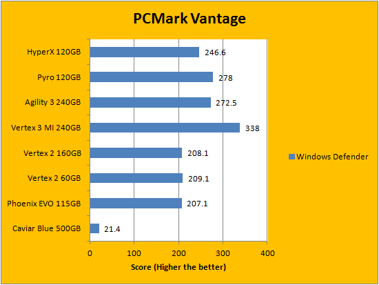 PCMark Vantage aims to shed a little more insight into real life performance of your computer hardware by semi-synthetic means -- and all insight is good, right? The great thing about standardized tests is anyone can repeat them and get very similar results, given identical hardware. Well, I am not going to narrate the stuff above in detail, because we all know graphs are there for a very good reason. As you can see in our graphs above, it is rather surprising that the Kingston HyperX 120GB came in dead last compared to other SF-2281 drives in every section. The SSD performed extremely well up to this point, so this is kind of weird. In addition, it seems every other review sites are getting much better results than I am with their Kingston HyperX drives, and I can't explain the difference even after several reruns.