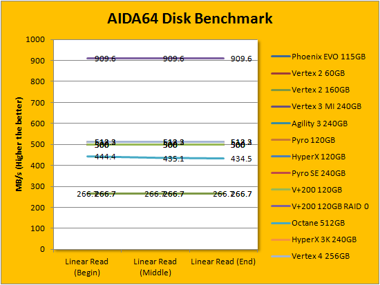 Since our SSD review benchmark results are presented in alphabetical order, first up on the list are results from one of our favorite benchmarking programs, AIDA64 Extreme Edition. As you can see in our graphs above, the Kingston HyperX 3K 240GB produced some of the best results we have seen in the past little while. While this is only a synthetic benchmark, we can see that the Kingston drive is competitive even against the OCZ Vertex 3 Max IOPS and OCZ Vertex 4 -- with some results actually ellipsing that of the renowned enthusiast drives.