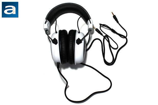 The Kingston HyperX Cloud gaming headset follows a white and black color theme, just like the Cooler Master Storm Ceres 500. However, I cannot really say it is as gamer-centric as the Ceres was, as there are quite a few areas where this headset is simply better. For one, all the white parts of the headset have a soft-rubber coating, including around the ears and on the side of the headband. This makes even adjusting or just holding the headset a pleasant experience in the hands. There are metallic areas, including in the middle of the ears, as well as the two arms to hold each ear in place. These do not feel unrefined or unintentional, but rather, add even more to the first-class design. The headband at the top has white stitching around the entire outside, while the HyperX logo is sewn on the top of the headset. Ask me how to sum up the Kingston HyperX Cloud for aesthetics, and I would say it is a mix between a panda bear and a storm trooper. Why? We get the nice soft touch in the hands, but we also get a refined and intentional design. The HyperX Cloud is also a good mix between a gaming and casual headset, because by looks, it is not out of place at LAN parties or on the bus. In terms of build quality, the headset is also very sturdy, and produces very little sound when adjusting the headset. The metal arms on both sides are also very strong, and do not allow for much flex.