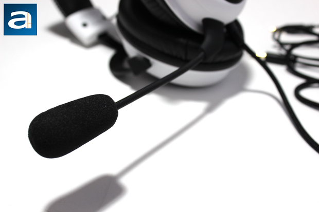 Working our way back down we see the microphone of the Kingston HyperX Cloud gaming headset. This microphone, unlike the cable, can be removed, and Kingston even provided a small cap cover to hide the input in case you have removed the mic. The gooseneck holding the microphone in place is fairly flexible, and can be easily shaped without having to readjust it all the time. This microphone is a very directional microphone, rather than an omnidirectional. What makes this beautiful is it picks up sound from only one direction. And no, not the band of five guys, but literally one direction. Therefore, you can play your favorite One Direction song without your one direction microphone picking it up. While some users may prefer the omnidirectional mic, I personally like this implementation as it removes the noise from other external sounds. The microphone also comes with a microphone windshield to remove external white noise, such as heavy breathing, or even the slight draft in your room. To mute the microphone, you will have to use the remote included with your HyperX Cloud.