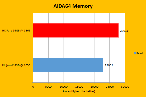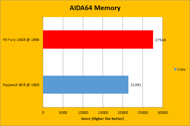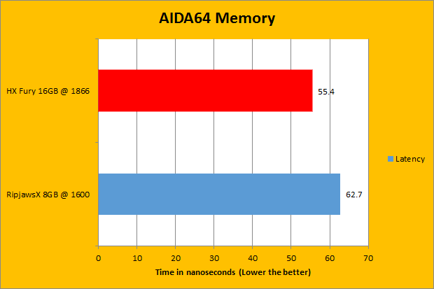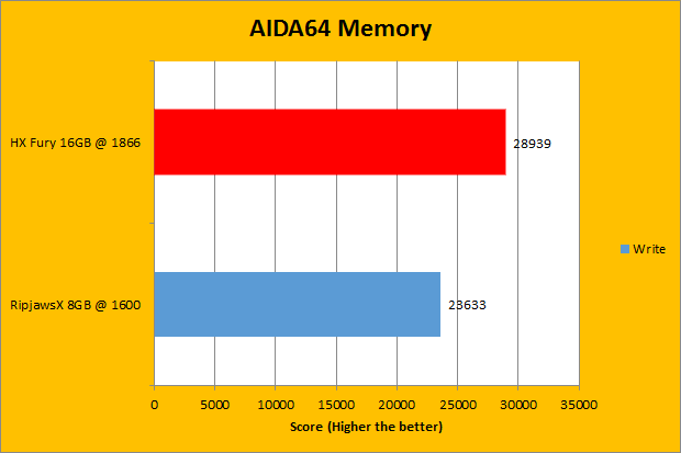 Finally we get to our first set of results that actually depends majority on the memory modules under test. As you have seen, usually the fastest RAM scores the highest in these tests, and that no different in this case, with the Kingston HyperX Fury DDR3-1866 taking the cake in all four graphs. Just to note, the last graph is measuring latency and thus a lower score is better. Otherwise, the results are once again rather as I expected, as we tested the G.Skill RipjawsX at a frequency of 1600MHz, obviously slower than the HyperX Fury.