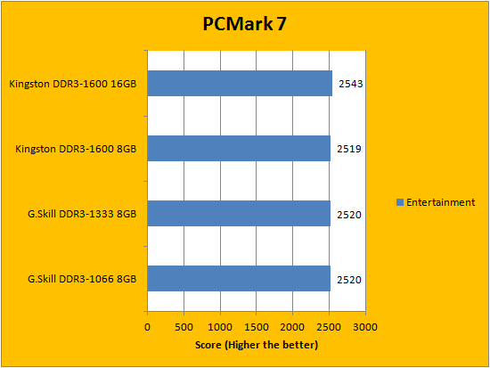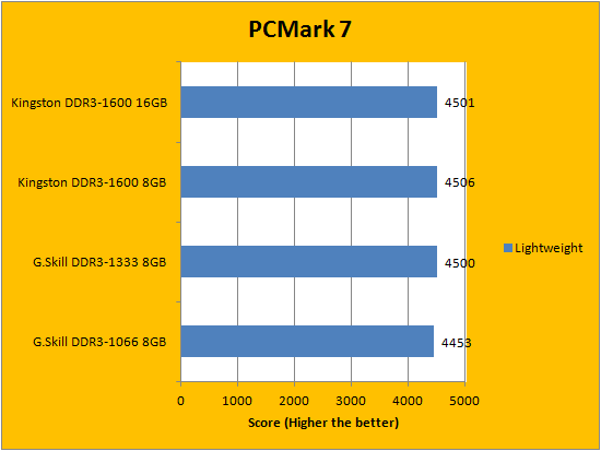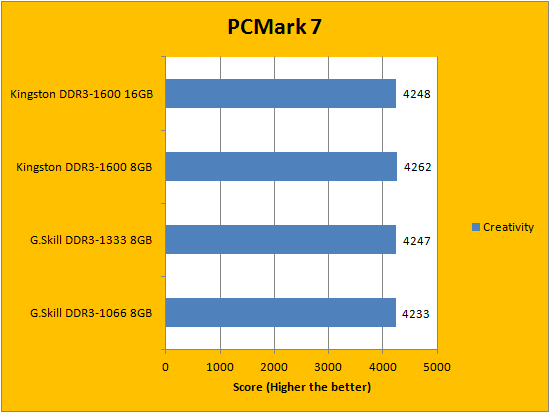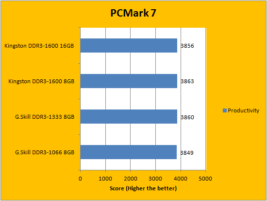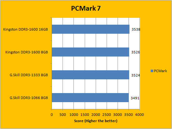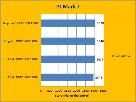 PCMark is a favorite benchmarking program for PC enthusiasts and reviewers alike, because it provides a very easy way to measure performance of different computers. It evaluates a system from seven perspectives (We only included the first six results, since the HDD test is not very relevant to a RAM review), and can be considered a synthetic real life benchmark. In the latest version of PCMark, Futuremark claims they have brought down the variance of each run to ensure accuracy of their benchmarks, and with a relatively low margin of error in mind, all tested RAM came out to be extremely close. There is no consistent lead with a large margin noticed for any of the products used for comparison in this review.