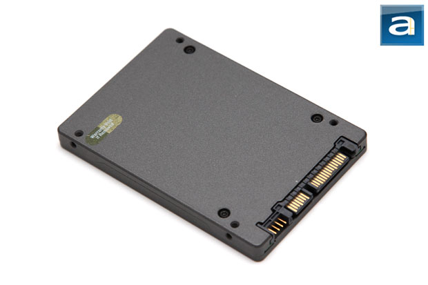Turning the SSD around reveals a dark grey metal backplate. This is something users will come to expect from a solid state drive, as there are no exposed printed circuit boards like you would normally see with a traditional hard disk. The only thing that is common between the Kingston SSDNow V+200 120GB SSD and a traditional hard disk drive is its SATA 6Gb/s and corresponding power connector at the end. As shown in our photo above, the back is completely blank, save for the warranty seal over one of the security screws. This is because all the miscellaneous information is found on the label on the top of the drive already, as discussed in the preceding paragraphs.