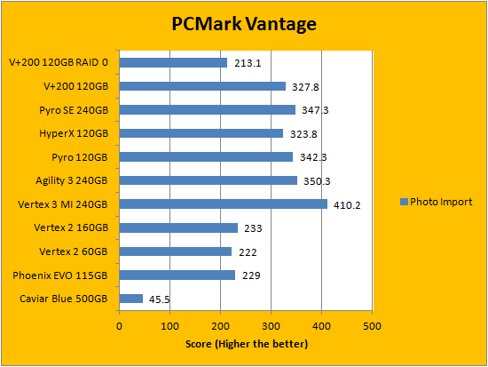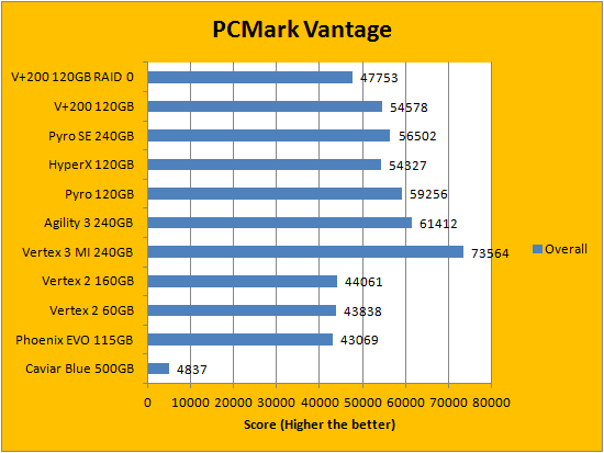 PCMark Vantage aims to shed a little more insight into real life performance of your computer hardware by semi-synthetic means -- and all insight is good, right? The great thing about standardized tests is anyone can repeat them and get very similar results, given identical hardware. Well, I am not going to narrate the stuff above in detail, because we all know graphs are there for a very good reason. As you can see in our graphs above, it is rather surprising that the Kingston SSDNow V+200 120GB's RAID 0 results are actually lower than it is compared to just having one disk. From what I have seen around the internet, I am not the only one getting these results, so hey -- what can you do. In single disk configuration, the SSD performed competitively for a value oriented solid state drive. Overall, the results are well within our expectations, so I will let you grab a look at our graphs above before moving on to the conclusion.