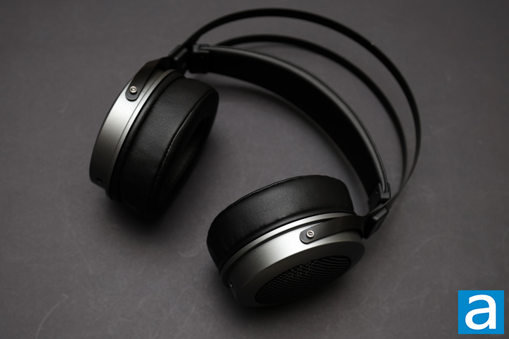 Out of the box, the Kiwi Ears Altruva is a noticeably big pair of headphones. This size is seen in the large ears and the metal headband. We have their gray variant, and this is seen primarily with the rim around the outer cups. In between, there is a black metal mesh and a Kiwi Ears logo behind. There is no solid backing here, which is unsurprising given the open-back design. The rest of the headphones are black with a curved metal frame that connects the two sides. There is a large hole at the top of the headband that splits the metal into two thinner pieces. The metal does not seem to have a finish on it, which means handling marks are easily visible. For those who want a bit more of a contrast in appearance, there is also a brown version with a wood-like finish on the ears, but the rest of the construction is the same.