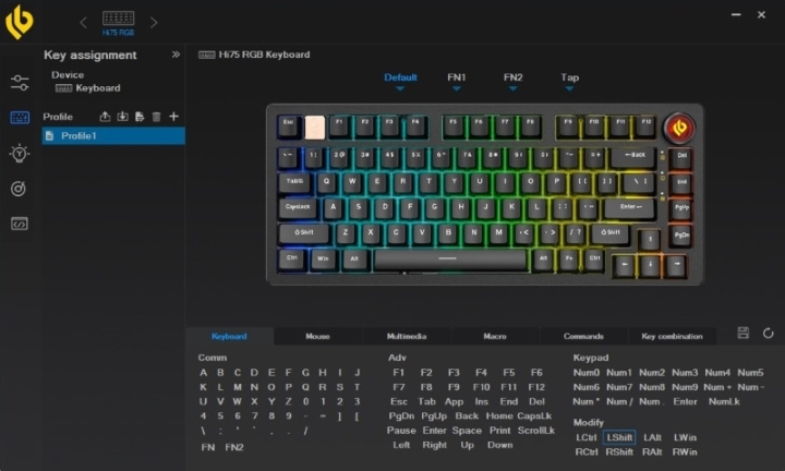 There is software available for the full control and customization of the LEOBOG Hi75. I had to do some digging in order to find it, as it is not mentioned in the user manual nor featured on LEOBOG’s product page for the Hi75. The only thing available on the product page was the firmware update. Instead, I had to go under the Downloads page for the driver. When trying to install the software, there is a warning from Microsoft saying that it is from an unknown publisher. I installed the driver on a virtual machine to avoid any issues. The Hi75 driver is easy to navigate. You can reprogram key bindings, set up macros, lighting, and other keyboard settings. There are multiple pages that divide up these functions, and it works well to apply the settings.