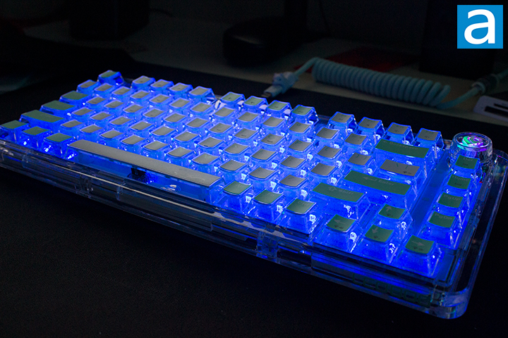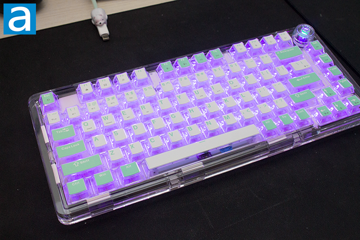 A highlight of the LEOBOG K81 is definitely its lighting effect potential. The clear design allows light to shine through without restriction. The glow is definitely something beautiful, but I would understand if some found it to be a bit much. I personally was a bit overwhelmed before adjusting the lighting, but I was able to find something comfortable. Seventeen different lighting variations can be toggled through by using the aforementioned backslash key. The effects can also be changed through the knob by holding it down, then single pressing the knob to cycle through the effects. Using the Tab key, you can cycle through eight different colors.