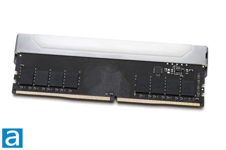 From the photo above, you can see the Lexar Hades RGB DDR4-3600 2x16GB has a black PCB that is sandwiched in the middle of the two heatspreader pieces. A plastic top piece sits above the two metal plates and are only connected to the aluminum sides with some sort of adhesive. These two sides are held onto the module itself by strips of thermally conductive adhesive and are not physically locked together. The adhesion force between the two heatspreaders and memory ICs is pretty strong, so I would recommend some sort of heat source if you do ever want to take them off. You can also see how the aluminum pieces are designed with them being mirror images of each other. Since the pieces are made from aluminum, it does not hold a lot of heat, therefore dissipating the heat energy relatively quickly into the surrounding environment. These pieces are pretty thin, but they still feel solid and should not easily bend. Either way, you will probably never remove the heatspreaders as most aftermarket CPU heatsinks should easily accommodate memory modules of this height profile.