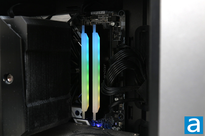 As you saw from the front of the box, the Lexar Hades RGB DDR4-3600 is compatible with all RGB lighting control software from major motherboard manufacturers such as ASUS, MSI, Gigabyte, and ASRock, Lexar also provides their own software to control lighting in the form of Lexar RGB Sync. This is available from Lexar's website and is a small 3.3MB download. Lexar RGB Sync is pretty straightforward as it only changes the lighting settings on the Hades RGB. The left side shows all of the different lighting effects that are possible, while the right side shows different ways you can modify the selected effect. From here, you can also see there are a total of eight lights on each stick of the memory. Depending on the effect, you can pick the color, brightness, and speed of the effect. Some also allow for changing the direction of the effect. There is also the ability to create profiles to quickly swap between four different saved lighting modes. I think most people would prefer to use their motherboard software since it can integrate with other hardware, but I am glad Lexar provided one anyways.