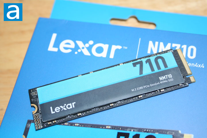 How did the Lexar NM710 1TB perform against other PCIe 4.0-based NVMe drives? Before we answer that question in detail, the NM710 1TB is a budget drive with no DRAM, so keep this context in mind. When it came to our synthetic tests and real-world medium workload simulations, the NM710 1TB was underwhelming in most of the tests, scoring around the back of the pack. When it came to real-world consumer workload tests however, the NM710 1TB displayed more promising performance, with it scoring consistently in the middle with PCMark 10 and 3DMark, even with its DRAM-less design. There were a few good highlights with loading certain games when it came to these simulations. Both the tested maximum read and write speeds were below what Lexar had advertised, but nevertheless came fairly close. The rated write endurance of 600TBW is solid for this 1TB drive, and is consistent with what we have seen on other drives of this capacity using TLC ICs. The design yells classic Lexar, with a slim blue heatsink covering the components. The Lexar NM710 1TB is shockingly cheap, being found at a price of just $38 as of time of writing. Compared to the WD_BLACK SN770 NVMe SSD, the Western Digital model can be found for $50 as of time of writing, which is an SSD with better performance, but is also $12 more expensive. The Crucial P3 Plus 1TB is a similar performing drive that is currently sold for $45, which is $7 more expensive than the NM710 1TB. We are down to the nickel and dime here, but if you are looking for a reasonable performing SSD at a rock bottom price, the Lexar NM710 1TB is the SSD for you.