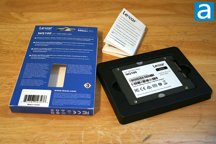 Opening the retail box reveals the Lexar NQ100 480GB placed inside a black plastic shell. I wish the plastic shell had completely covered the drive for more protection, but ultimately, it arrived in perfect condition, so the packaging did its job. The size of the box is quite small, wasting no space. A user manual is also included that contains an installation guide and information on the warranty. Nothing else is included with the retail packaging, but this is to be expected with storage devices.