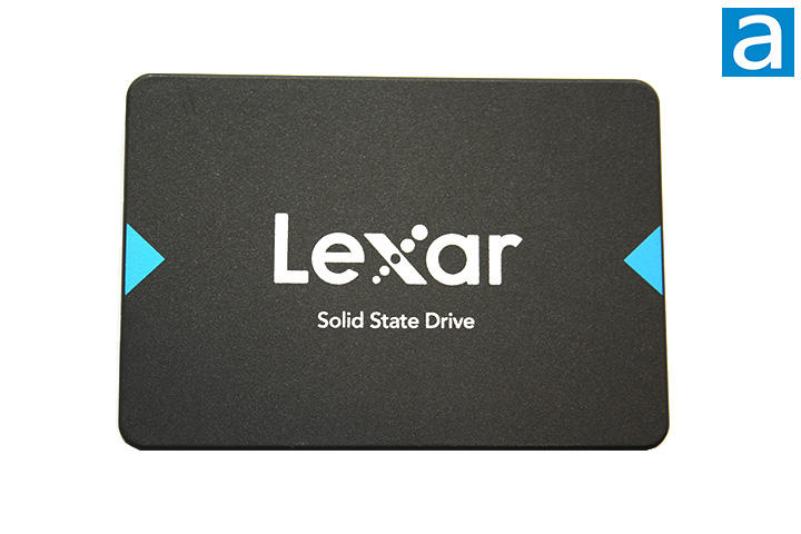 The principal side design of the Lexar NQ100 480GB is quite simple with very little text or symbols. The Lexar logo is front and center with the text “Solid State Drive” printed directly below in smaller font. Two blue sideways triangles are seen on the edges pointing inwards. The enclosure is made out of a grey colored plastic shell. The drive measures 69.85mm in length, 100.2mm in width, and 7mm in height, which is pretty standard for a SATA SSD. The NQ100 480GB is also quite light with a mass of 34g.