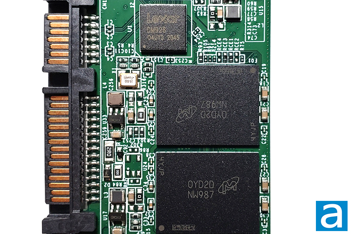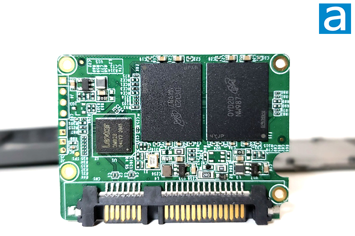 The Lexar NQ100 480GB’s shell is held together purely by friction, thus prying it open is the only way to look closer at the drive itself. Please note that removing the enclosure will void the warranty, so open at your own risk. Diving into the actual SSD, we can see a small printed circuit board with various surface-mounted components embedded onto the green glass fiber laminate surface. This, of course, is different than the traditional HDD that contains a spinning platter. You will also notice the board is one-third the size you would normally see in other SSDs, like with many other budget drives out on the market. The brain of this compact board is a Lexar DM928 controller.