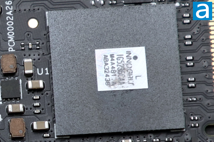 Underneath the label, you can get a better view of the primary components of the Lexar NQ780 4TB. The first thing we can see is the smaller chip, which is the Innogrit IG5236. This is an NVMe solution on the M.2 socket that uses the PCIe 4.0 standard. While this controller can be paired with integrated memory, Lexar has not included any DRAM on the NQ780. This is a bit of a disadvantage to having no DRAM, as this can affect prolonged reading and writing performance. To alleviate this, some SSDs without DRAM may utilize HMB, or host memory buffer, and allocate some of the system's memory as a buffer location for faster access compared to flash NAND access. This is the case with the Lexar NQ780 4TB.