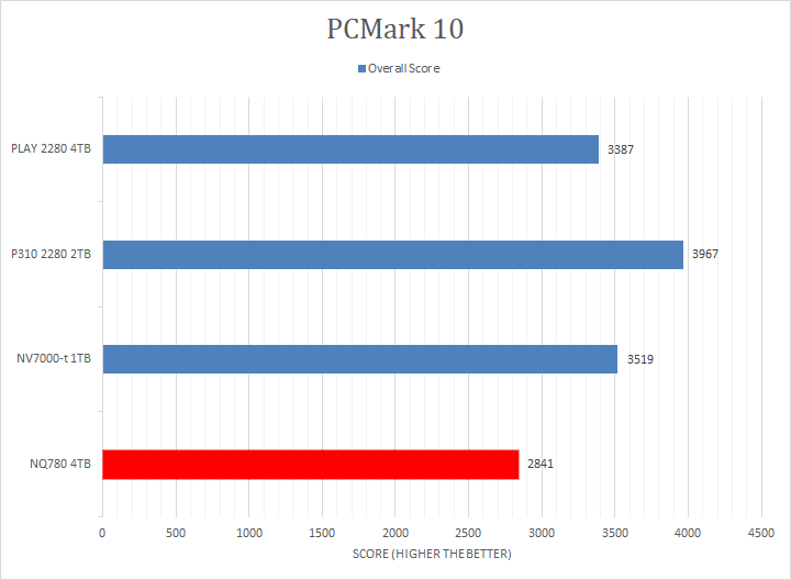 The Lexar NQ780 4TB provided disappointing results in PCMark 10's benchmark here, giving us the lowest overall score. This was quite a bit below even the second slowest Lexar PLAY 2280 4TB too. Looking deeper into the numbers, the Lexar NQ780 4TB was at the bottom for every single one of the tests, with the only exception of a couple of file transfer tests. Application loading and usage results were very slow, and this explains the overall low score.