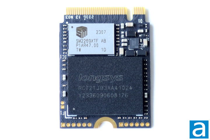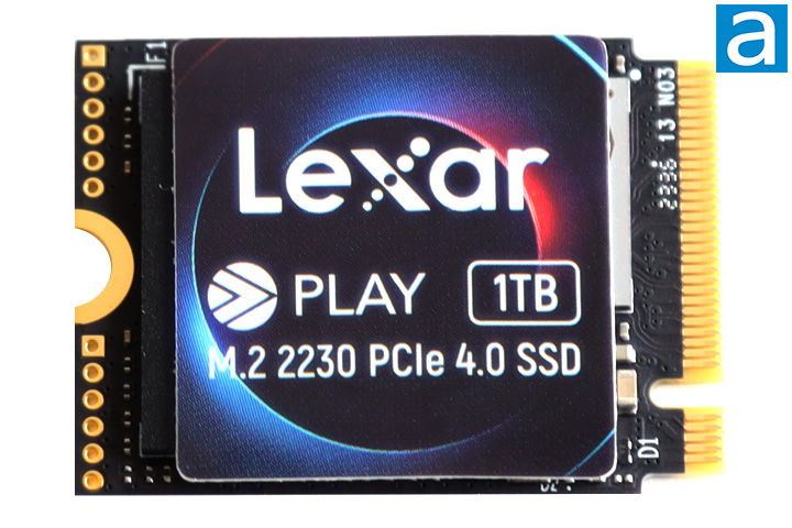 The PLAY 1TB is an M.2 2230 format SSD. If you are not familiar with the M.2 physical standard, M.2 2230 means the size of the drive is 22mm by 30mm, hence its numerical designation. This form factor is commonly used in ultrathin laptops that are size-constrained as well as portable gaming devices such as the Steam Deck. Its components are located on the black printed circuit board, which we will take a closer look at in just a moment. The Lexar PLAY 1TB works on the NVMe 1.4 logical device interface and plugs into compatible motherboards directly. Electrically, M.2 NVMe interfaces with PCIe 4.0. The Lexar PLAY uses four lanes for up to 8000MB/s bandwidth in each direction. The specified weight is a paltry 3.21g for this SSD.