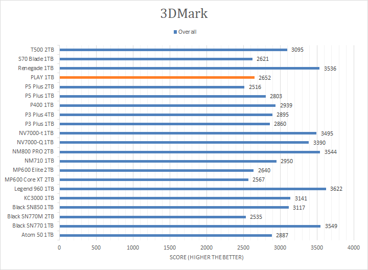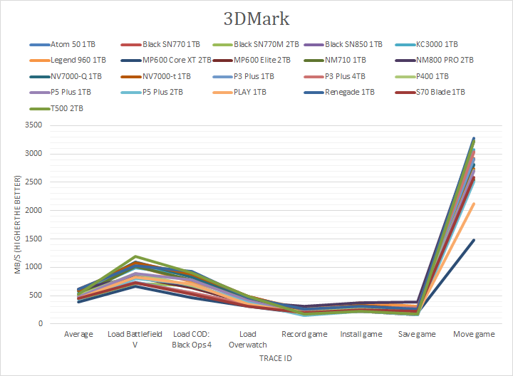 3DMark is the continuously updated version of the popular gaming benchmark from UL. We used 3DMark's Storage Benchmark to test the performance of the Lexar PLAY 1TB. According to UL, the Storage Benchmark uses traces recorded from popular games and gaming-related activities to measure real-world gaming performance. The following traces were used and defined as follows: