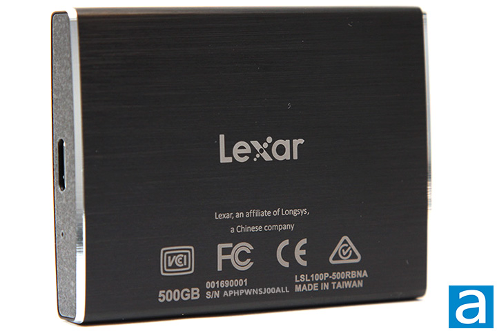 As it is with the front of the Lexar Professional SL100 Pro 500GB, the aluminum back has a brushed finish. A series of regulatory logos and the unit's serial number is found at the back as well. On the inscriptions, you will see this is the 500GB model and some nationalistic pride of it being a Chinese company, although it is made in Taiwan. There is also a 1TB variant of the Lexar Professional SL100 Pro.