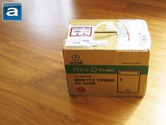 It's kind of funny, because when I didn't exactly know what to expect when the Lian-Li PC-Q07's delivery notice got dropped off in our mailbox. Therefore, to play it safely, I parked my car directly outside the postal outlet's main entrance built conveniently one minute's drive away from here. Much to my surprise, I walked into the postal outlet, signed the standard papers, and walked out with a box that is sized as seen above, and felt as if it weighed half a pound. Heck, if you told me that the box was empty, I would have believed it. The Lian-Li PC-Q07 is really that light!