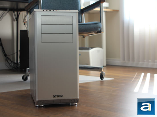 Mnmlst. Yep, that's right. Unmistakably Lian Li, the PC-Z60 shows its face with a beautifully constructed brushed aluminum front panel, with clean, well rounded corners, and a sleek array of front panel connectors angled off at the top. Our silver version of the latest addition to the company's Diamond series mid-tower cases only has three external 5.25" drive bays in the front -- and subsequently, Lian Li's logo at the bottom, and that's pretty much everything. If you remove the front panel, you will gain access to the hot swap capable hard drive rack. But as far as its looks are concerned, simplicity is the key. No fancy designs. No front door. Just Lian Li. I can write more, but I will let my photo above speak for itself.