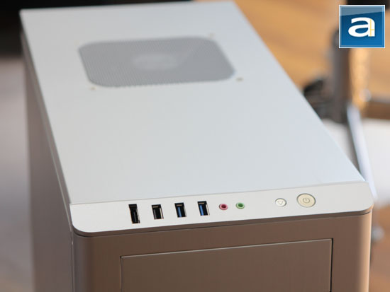 Angled at 45 degrees at the top of the case is the usual array of front panel buttons and connectors. It is not only very convenient to access (Especially if your computer is on the floor), but I think this is quite unique in appearance as well. Having something like the Patriot Supersonic Magnum running off the front panel USB 3.0 ports is certainly not something you see every day. To list everything present on the Lian Li PC-Z60's front panel starting from the left, we have one eSATA, one USB 2.0, two USB 3.0, two 3.5mm jacks for microphone and headphone, reset button, and power button. The Lian Li PC-Z60's USB 3.0 ports are connected internally. However, if your motherboard does not have any internal USB 3.0 headers, a USB 2.0 adapter is included. Both the power and reset buttons are pretty large, but thankfully, it sits completely flush with the case, so you are quite unlikely to activate them accidentally. Additionally, because they are angled off at the top as shown above, neither kicking feet nor flinging hands are likely to cause any screaming anger in frustration. A red HDD LED and blue power LED is integrated into the reset and power button, respectively; so if you are one of those complaining that the Lian Li PC-Z60 has no lights, you are definitely doing something wrong, haha.