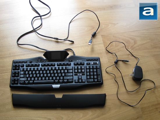 Fortunately, none of which are missing from our package! (Well actually, the documentary and software CD somehow made its way out of the photo above, but I can assure you that I have them on me. It was not necessary for me to use them, however.) The AC adapter connects to the main USB cable attached to the Logitech G19 keyboard to supply additional power for features such as the dedicated LCD screen, backlit keys, and its two powered USB ports.