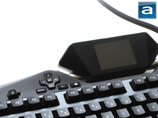 Here's the part we've all been waiting for: The Logitech G19's Color GamePanel LCD display. The Color GamePanel LCD is a relatively high resolution 320x240 screen that measures 2.5" on the diagonal. It even has a hardware graphics accelerator, so you can watch videos on it, and enjoy fluid fade effects throughout the user interface that Logitech implemented. Yes, we're talking about a keyboard here.
