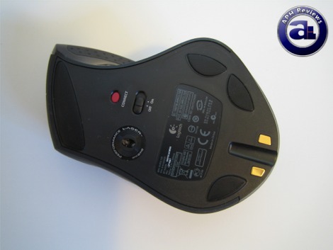 Four Teflon pads of various sizes are utilized for the Logitech MX Revolution mouse feet. We would definitely have appreciated larger pads for better gliding performance, but nevertheless I am glad to see that majority of Logitech mice use Teflon feet now, and glide on the MX Revolution is very good for an office mouse.