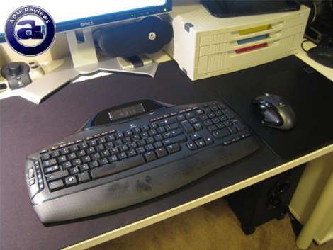 The Logitech MX5500 Revolution at my workstation setup. As we've mentioned earlier, the MX5500 keyboard's palm rest is vulnerable to temporary marks due to skin moisture -- we've also complained about such in our Logitech MX3200 review a year and a half ago. Regarding the mouse, while the MX600 had some problems tracking on my SteelSeries SX mousepad, the MX Revolution had absolutely no issues at all. All in all, there's no observable Bluetooth lag with both the keyboard and mouse -- both the Logitech MX5500 and MX Revolution are a pleasure to use without any hassles or problems at all.