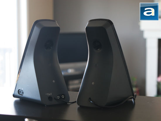 As far as connections are concerned, all the fundamental audio cables are hard-wired to the speakers. This includes the left speaker wire, which connects to the right speaker by a two pronged plug, as well as the analog audio cable on the right speaker, which connects to your computer. The 14.4V/2.5A (36W) power input delivered by the included AC adapter plugs into the back as well. Two 3.5mm jacks can be found on the right side of the right speaker -- one for connecting your headphones, and the second one for auxiliary audio input such as your digital audio player of choice.