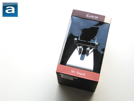 The retail box of LUXA2's H1-Touch arrived in pristine condition. Combining elements for a clean, modern, and elegant design, the packaging makes the product seem like it's from your local designer kitchen, bed and bath superstore -- rather than a computer retailer filled with busy boxes and terms only electronic engineers would understand. A burgundy-brown section makes a clean cover on the upper section of the box; while a light chocolate brown covers the remaining 15% area on the right. A clear plastic window occupies majority of the room on its front face -- plus some right around the corner on the left. LUXA2's logo is placed top center, while its product name, "H1-Touch", is placed bottom center. LUXA2's slogan, "Uniquely You", along with the website URL, is placed center over white background on the left side of the box. At the back is again LUXA2's logo followed by the line "A division of Thermaltake" underneath in relatively large font; also printed on white background to accentuate its design effect. The only side that has the most text is the right side, with product description in 9 different language or language variants. Overall, packaging is very simple and clean -- no text overload or complex graphics.
