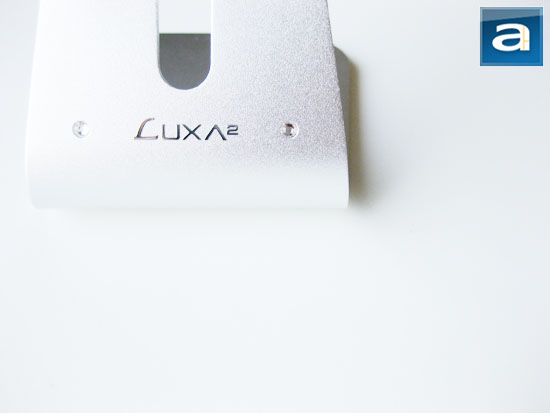 Its 3mm thick, grain textured aluminum also contributed to its remarkable solidity and sleek looks. Visualize the LUXA2 H1-Touch's base stand as a long isosceles triangle with approximately 2cm radius rounded off corners at all three perimeter locations. A 63-degree recessed slope, from my measurements against the horizontal, is executed near the middle of the triangle so it stands up in a balanced fashion. The center curve is also done very cleanly with no inner thickness increase, nor uneven sides; this problem commonly occurs with cheap construction methods by bending the piece of metal back after it's been molded. We're proud to say that LUXA2 got it perfect right there too.