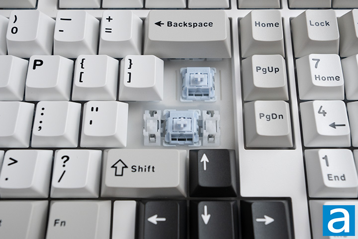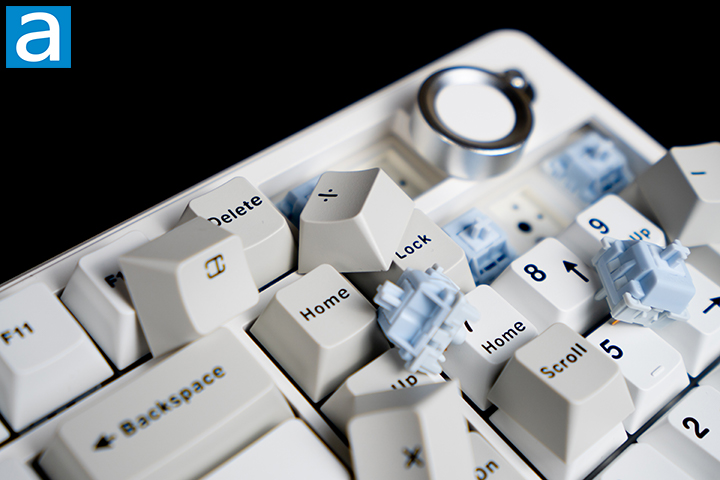 The switches are hot-swappable plate-mounted using five pins with IXPE switch pads separating them. There might be more layers of dampening materials between them, but it was difficult for me to check without ripping the IXPE pads. The stabilizers are Cherry MX with factory-lubing. No rattling is heard when the Enter, Backspace, space bar, and Shift keys are pressed. The LEDs are south-facing to ensure compatibility with the keycaps. They also diffuse the light more compared to north-facing ones.