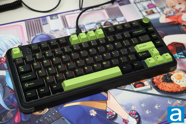 The black and green color scheme may cause some divisive opinions, but there is no doubt it stands out on most desks. Given my familiarity with the Vibe75's layout, the M75 was extremely easy to get used to. In terms of layout, everything felt comfortable, but some may not like the shorter right Shift key. If you have bigger hands, you may accidentally hit the Up arrow instead. I also ended up keeping the volume knob in the top corner instead of replacing it with an additional key.