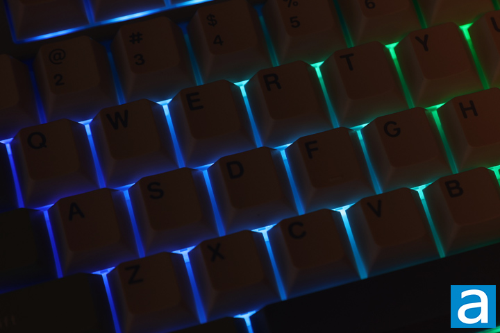 As for secondary functions, none of them are on the keycaps, but you can find these specified in the user manual. To access these functions, start by pressing the Fn key on the bottom right side before pressing the specified key. The first set is found in the top function row. With the Windows layout, F1 and F2 are used to decrease and increase the screen brightness. F3 to F5 open your Task Manager, File Explorer, and Search function, respectively. F6 is used to take a screenshot. All the media keys are found from F7 to F12, and they execute Previous Track, Play/Pause, Next Track, Mute, Volume Down, and Volume Up. The keyboard also supports Mac functions, and they are placed where you would expect on a Mac keyboard.