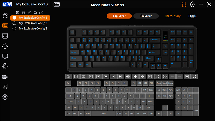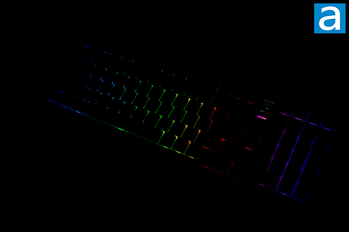 I would say the MechLands Vibe99 definitely has good lighting effect potential for a keyboard with no shine through keycaps. I believe this is due to the lighter tone foam used between the PC plate and PCB. Having a partially transparent plate, combined with the brighter foam allows for light to better reflect around the keyboard. With everything put together, the keyboard quite literally glows. I appreciate how evenly distributed the lighting appears. I personally found the lighting to be fine, as I had no problem with configuring it using software or the screen. I do not think any users will have any issues in regard to lighting. Nineteen lighting variations can be toggled through by using the software I will talk about in a moment.