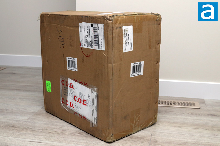 Today's review unit of the MetallicGear Neo arrived in relatively average condition. Just like my personal purchases, this case came to us by UPS and their standard Ground service. The brown corrugated cardboard box arrived with several dents and bruises around the edges and corners. There are a few holes on the side panels too, which are a bit concerning. This came from Walnut, California, which is the home of MetallicGear and its parent company, Phanteks. Otherwise, there is not much else to see here, so I grabbed a pair of scissors to open up the box.
