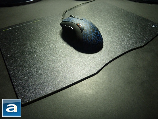 The surface of the mousepad has a generally smooth feeling to it. I would say it is comparable to the texture you would get after sanding wood with a 120 grit piece of sandpaper. Now for those that don't know what that feels like, in simple terms, it is a rather smooth and comfortable surface to touch. One major issue that I found with the plastic coating is it has very rough edges around the mousepad. Fortunately, under normal usage it isn't very noticeable, unless you are repeated moving the mouse in a forward manner. Overall, the surface is an excellent choice to complement any optical or laser gaming mouse. For those that are curious, the mousepad's surface generates roughly the same amount of noise if you had instead used a mouse was on a hardwood surface.