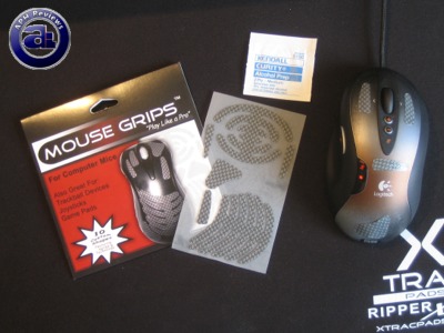 According to our tests, it appears to us that it is very important to clean the application surface before putting the MouseGrips 2.0 on, otherwise it won't stick properly. Using the sheet of included alcohol prep to clean the surface of our Logitech G5, we applied several pieces from our MouseGrips 2.0 onto where we believe enhanced grip is essential.