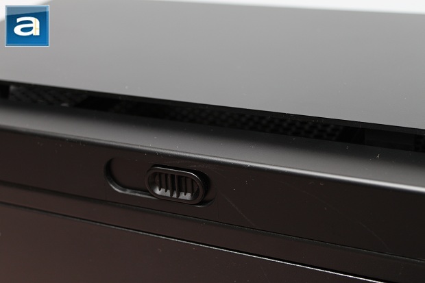 The Nanoxia Deep Silence 1 features a chimney, in which you can raise the top panel to let out exhaust heat -- hence the name. This can be opened and closed via a slider, as shown in the photo above. The functionality is threefold: It serves as letting exhaust out when it is opened, gives the case clean lines and slick looks when it is closed, and prevents dust from settling into your case. One issue I see here is if one were to forget to open it while your internal parts run hot, the air may not flow as optimally as one would hope. However, this should not be too big of a problem. If you noticed on the second photo, there is an opening near the top on the back side, which allows for air to flow, and also serves as a convenient handle to lift your computer around.