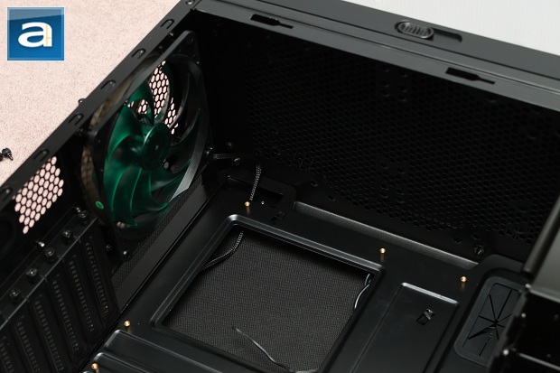 The Nanoxia Deep Silence 1 is able to house mITX, mATX, ATX, and XL-ATX motherboards. A total of seven openings are available for running cables behind the motherboard tray to keep everything neat and tidy. Riser mounting holes are provided throughout this area, but it would be nice to see that Nanoxia label these holes for the convenience of the user. A 120mm rear exhaust fan is situated near the CPU socket area for maximum cooling performance. All stock fans come with 3-pin motherboard headers, but it would have been convenient if Nanoxia provided adapters to accommodate those that don't have enough heads on their motherboards. As seen from the photo above, there is also a large square opening for easy aftermarket heatsink installation without having the need to remove the motherboard first. However, it doesn't seem large enough to accommodate modern motherboards with shifted CPU sockets. It would have been good if Nanoxia either shifted the opening further to the right or make the opening bigger.