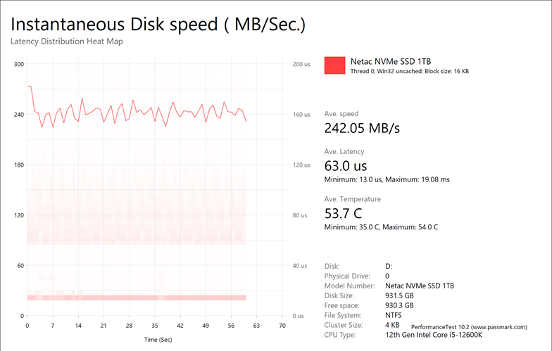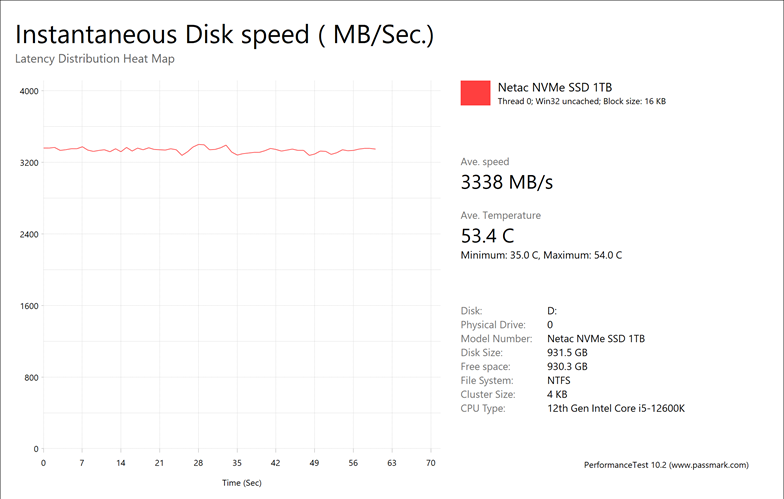 This Advanced Disk Test, which is part of PerformanceTest, measures the data transfer speed when reading or writing data to one or more disks. The speed that data can be transferred between memory and a hard disk drive is one of a system's most important performance aspects. There are quite a few factors which have a bearing on this speed and the Advanced Disk Drive Test allows the user to vary most of these factors and compare the results.