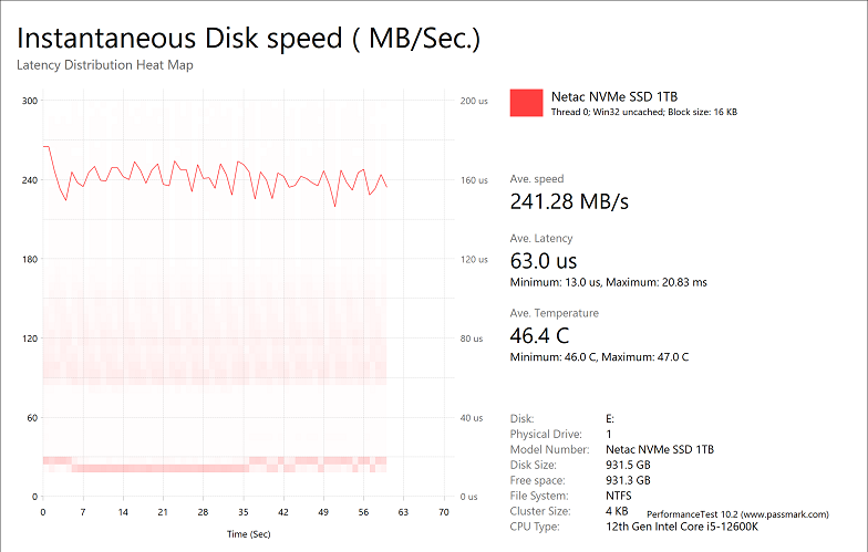 This Advanced Disk Test, which is part of PerformanceTest, measures the data transfer speed when reading or writing data to one or more disks. The speed that data can be transferred between memory and a hard disk drive is one of a system's most important performance aspects. There are quite a few factors which have a bearing on this speed and the Advanced Disk Drive Test allows the user to vary most of these factors and compare the results.