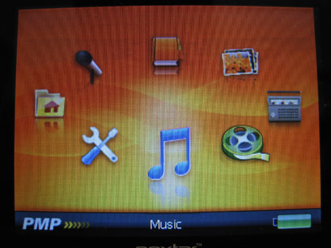 A total of eight icons are displayed in what is perceived as a circular selection menu, allowing the user to scroll left and right via the tactile buttons at the top. Each icon well represents its function; in clockwise order, we have Music, Settings, Explorer, Record, E-Book, Pictures, Radio, and Video. It would be really sweet if the menu corresponds to a touch screen -- or even if the scrolling icons are animated at the least -- but it's not. The control buttons in relation to what's appearing on screen also has a noticeable delay.
