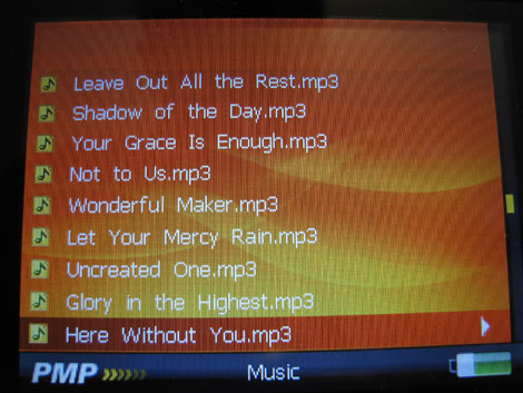 Regarding the Music screen, there's quite a bit of problems associated with it in my opinion as well. The large area is overly filled with information; and while the orange gradient background works great with the main screen, it would be nice if something else is used here -- if not allowing the user to select their own background image. Additionally, ID3 tags are not read; it only shows the file name. Album art is certainly out of the story.