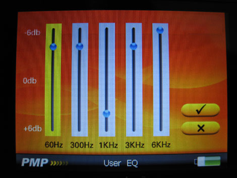 The equalizer screen. The adjustable range isn't high; and the player's DSP does not reprocess the audio much with EQ on to make a significant audible difference.