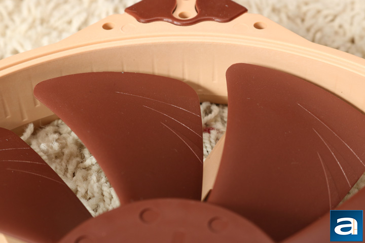 Each of the fans have mostly the same design and features. I will generally go over each of the same design choices here, then I will go into what is unique to each of the fans as we proceed through this review. All of the Noctua NF-A series fans feature flow acceleration channels. According to Noctua, these grooves at the outer edges of the fan blades speed up the airflow at the outer regions while reducing suction side flow separation, which will increase efficiency and lower the vortex noise. They also feature a stepped inlet design, ensuring a transition from laminar flow to turbulent flow, which again, according to Noctua's website, reduces tonal intake noise. Furthermore, it also improves flow attachment and increases suction capacity. There are also inner surface microstructures, which reduces blade passing and improves airflow and pressure sensitivity. Each fan features Noctua's AAO (Advanced Acoustic Optimization) frame, which are the integrated anti-vibration pads and the other two features I have covered above.