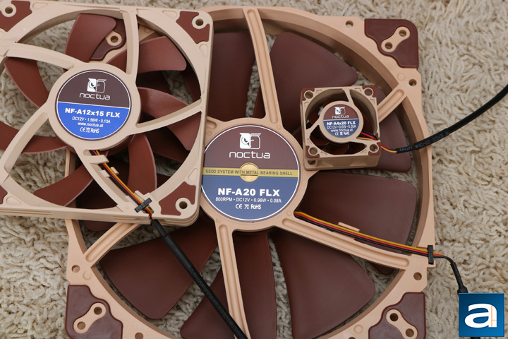 Pictured above are the NF-A4x20 FLX, NF-A12x15 FLX, and NF-A20 FLX fans. I listed them going from smallest to biggest size. When I first opened the 40 mm fan, I was surprised at how small it was. It looks even smaller when compared to the NF-A20. Regardless, every fan in the Noctua NF-A series has Noctua's classic light tan and brown color scheme, which I think never fits into anyone's computer set up. It might be a good idea to do a Noctua themed build, which would look pretty cool. Classic to Noctua, all of these fans have a six-year warranty.
