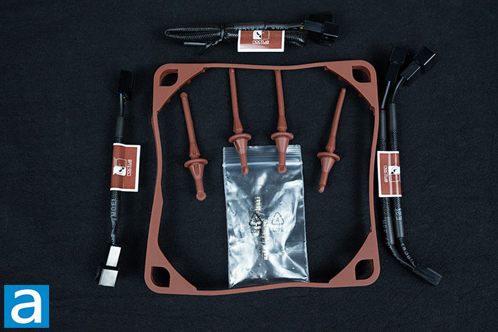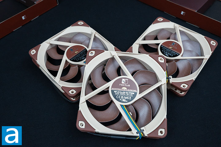 The Noctua NF-A12x25 G2 Series comes with a set of accessories for each fan included. Each set has a low-noise adapter, 30cm extension cable, 4-pin splitter cable, anti-vibration mounts, anti-vibration gasket, and fan screws as mentioned on the first page.