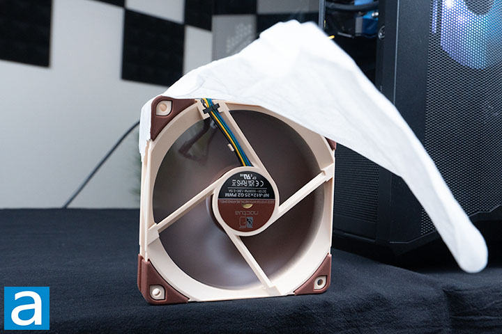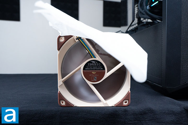 In terms of volume produced by the Noctua NF-A12x25 G2 PWM, it was decently quiet when spinning at maximum speeds, both at full power and low noise mode. On a scale of 0 to 10, where 0 is pure silence, and 10 is standing right below fireworks, I would say the fan is a 2.5 at full power and 2.0 with the low noise adapter on. This noise level is excellent considering the performance of the fans.